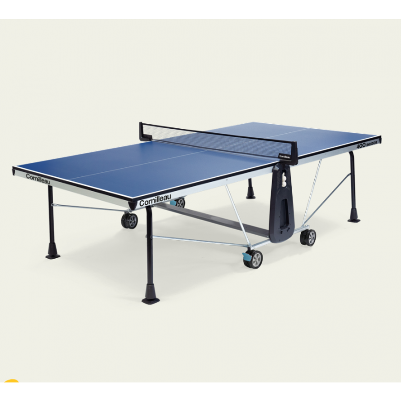 The 400 indoor has a 22mm playing surface with a 50mm frame and is a good match for more expensive tables from other brands with its adjustable net and easy folding system.This table tennis table benefits from Cornilleau’s COMPACT TECHNOLOGY storage system and patented DSI folding system for ease of use. This model also benefits from leg levellers, corner protection pads and 2 of the wheels have brakes. It is the ideal choice for family table tennis tournaments and is also a popular option for schools